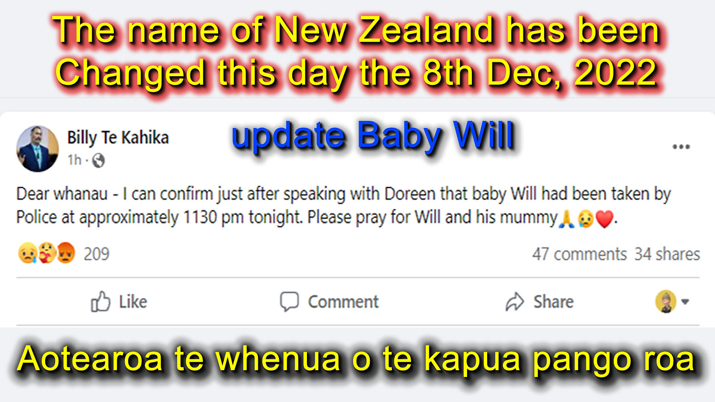 2022 DEC 08 Update on Baby Will at approx. 2330 hours NZ Police Took baby from mother