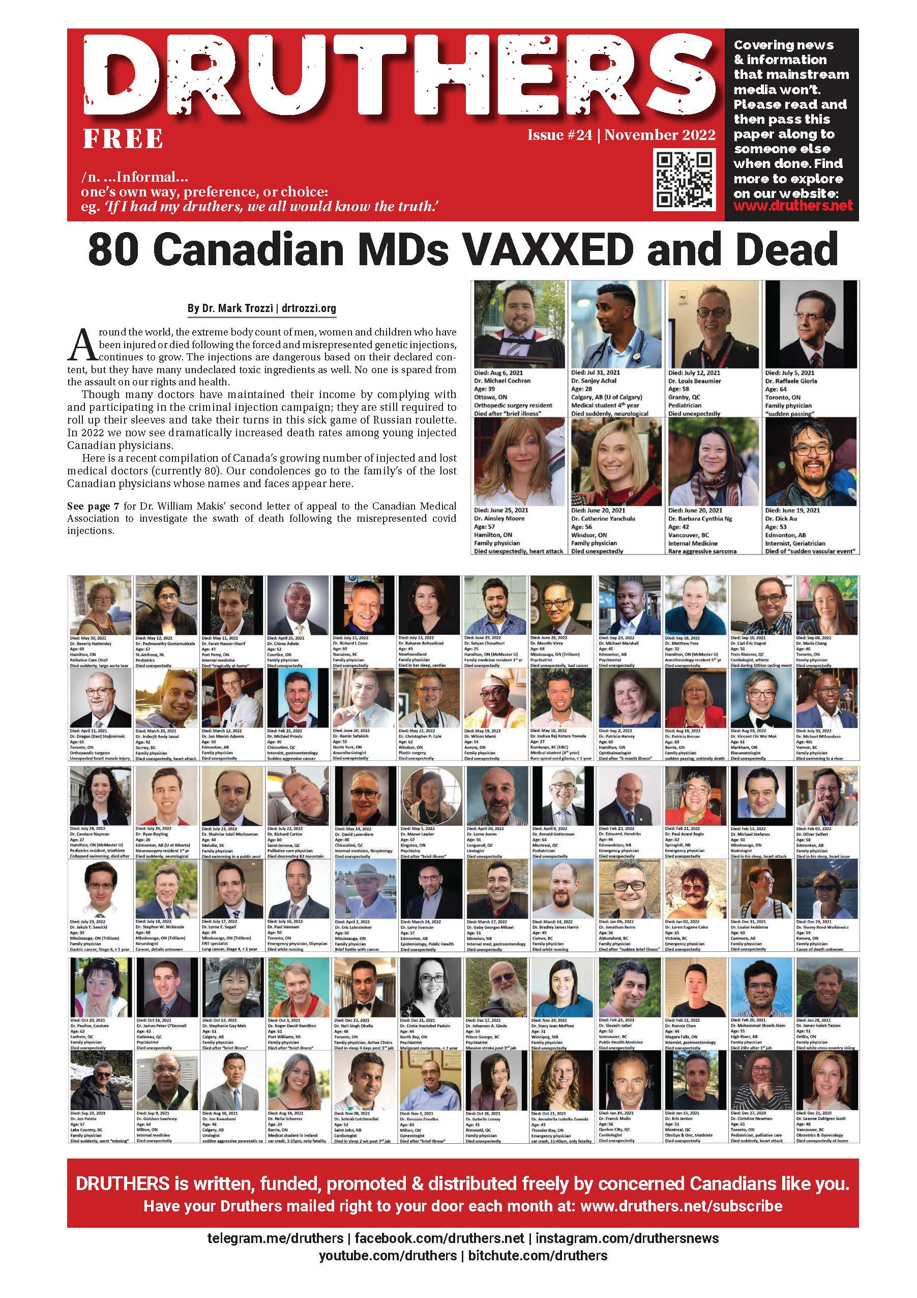 2022 NOV 01 80 Canadian MDs Vaxxed and Dead