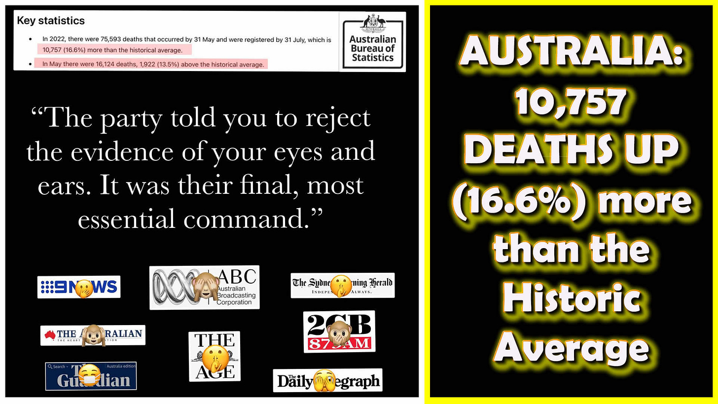 AUSTRALIA: 10,757 DEATHS UP (16.6%) more than the Historic Average.