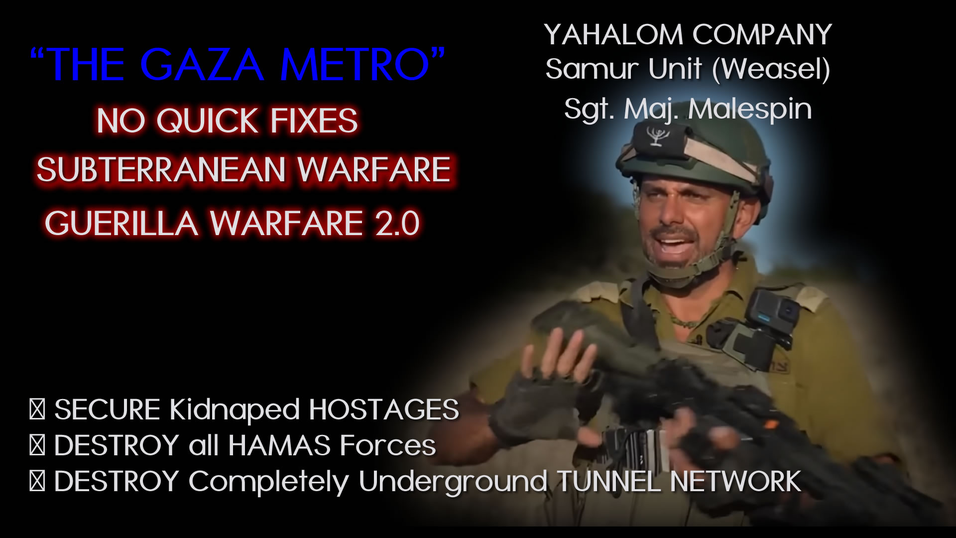 The Elite IDF Yahalom Samur Unit (Weasel) Unit has Begun Destroying Hundreds of Miles of Terror Tunnels: and its 'Guerilla Warfare 2.0'. The Yahalom Company is made up of Jewish, Muslim, Christian and Druze soldiers of the Israeli Army.