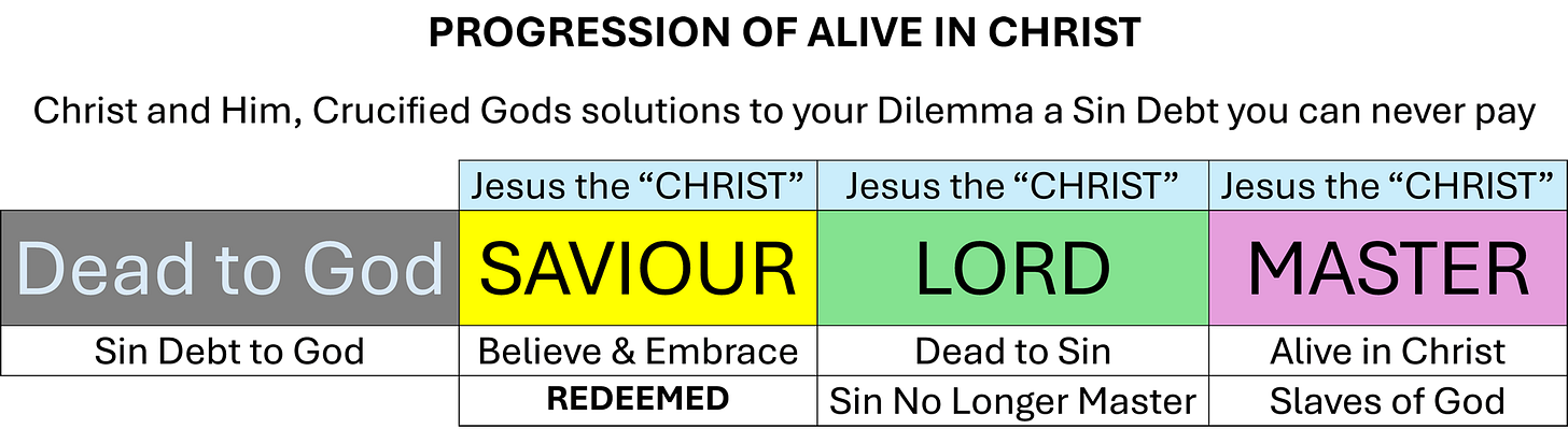Saviour, Lord and Master becoming Dead to Sin, Alive in Christ
