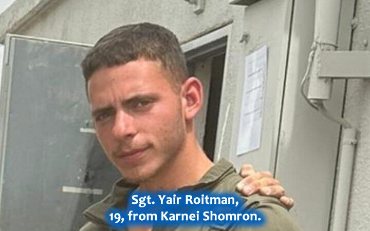 He was named Sgt. Yair Roitman, 19, of the Givati Brigade’s reconnaissance unit, from Karnei Shomron.