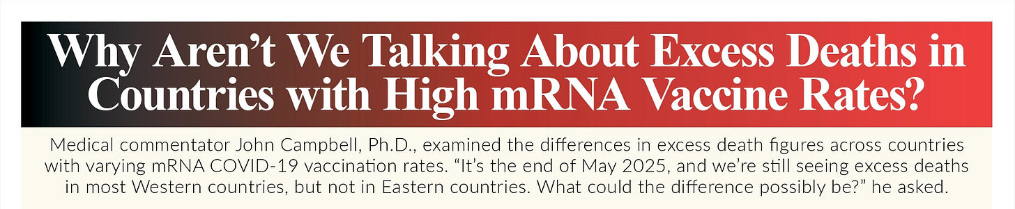 Why Aren’t We Talking About Excess Deaths in Countries with High mRNA Vaccine Rates? AUS 15%, ISR 20%, ROK 20%, GBR 20%, CAN 25%, JPN 25%, NZL 30%, TWN 30% and SGP 35%