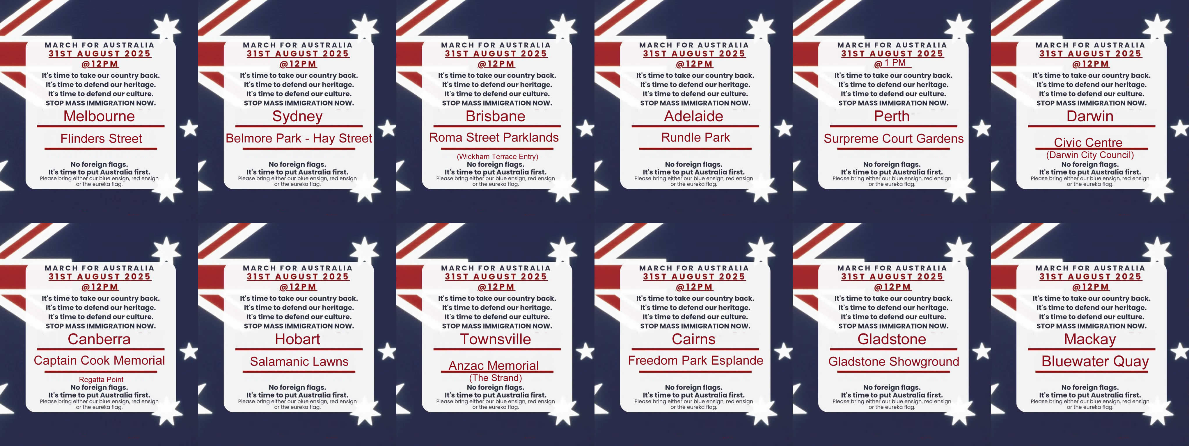 The march is for ALL Australians, no matter origin or heritage, rallying together against Government agenda of hyper/mass migration far beyond sustainable levels which is being used as a tool to hide a very real recession that Australians are experiencing.