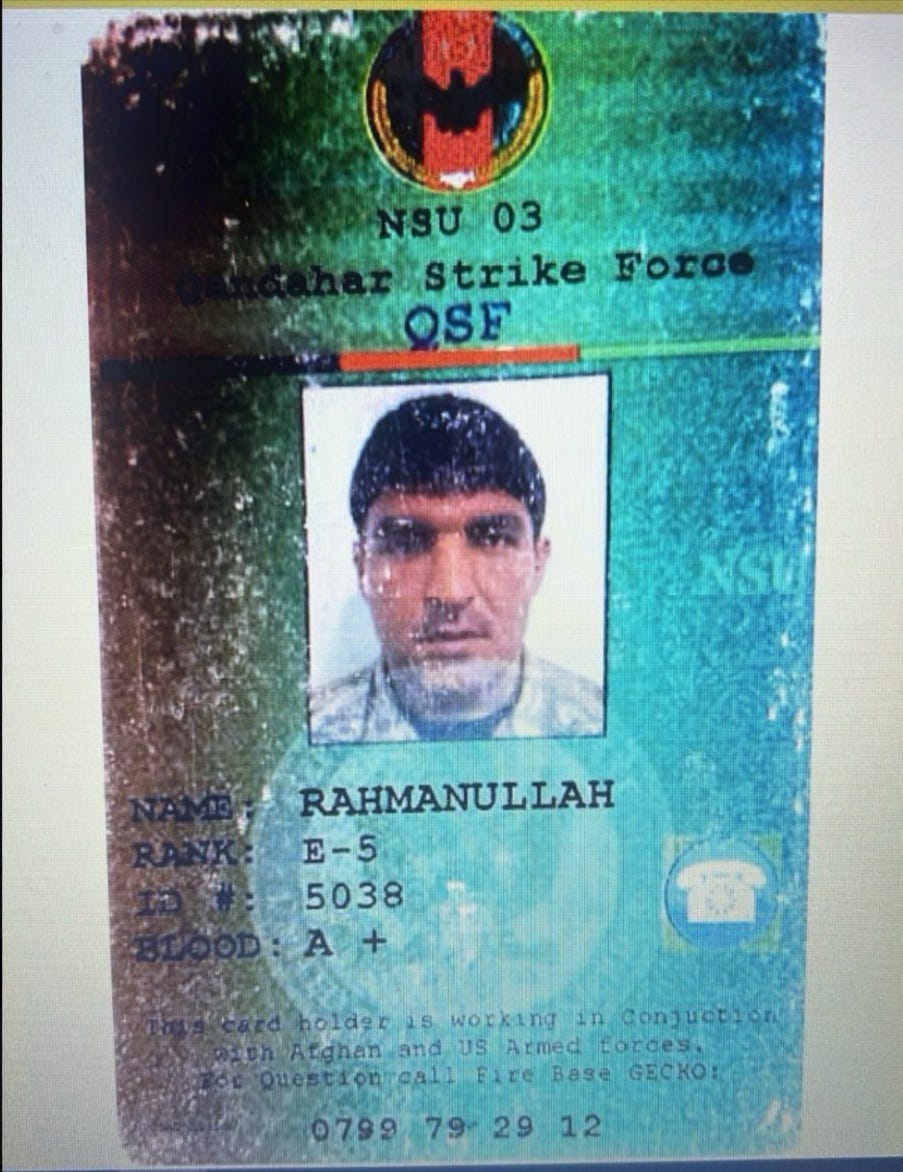 Lara Logan asked10: Is the CIA behind the murder of two US soldiers near the White House? Did they direct/orchestrate this act of war? Take a close look at the gunman’s ID card below - acc to this he was a member of the Qandahar Strike Force, a CIA-backed paramilitary unit. He’s one of theirs