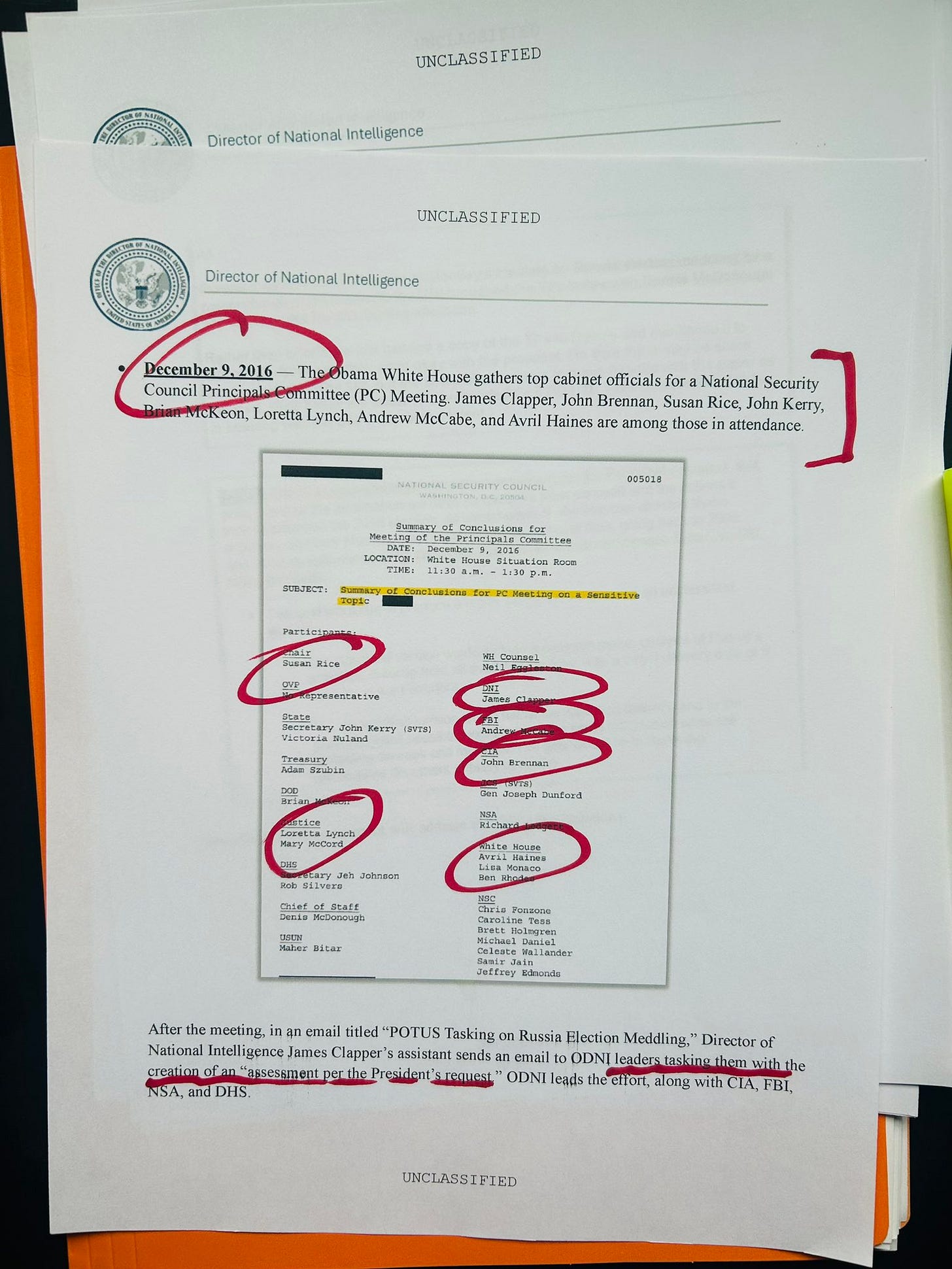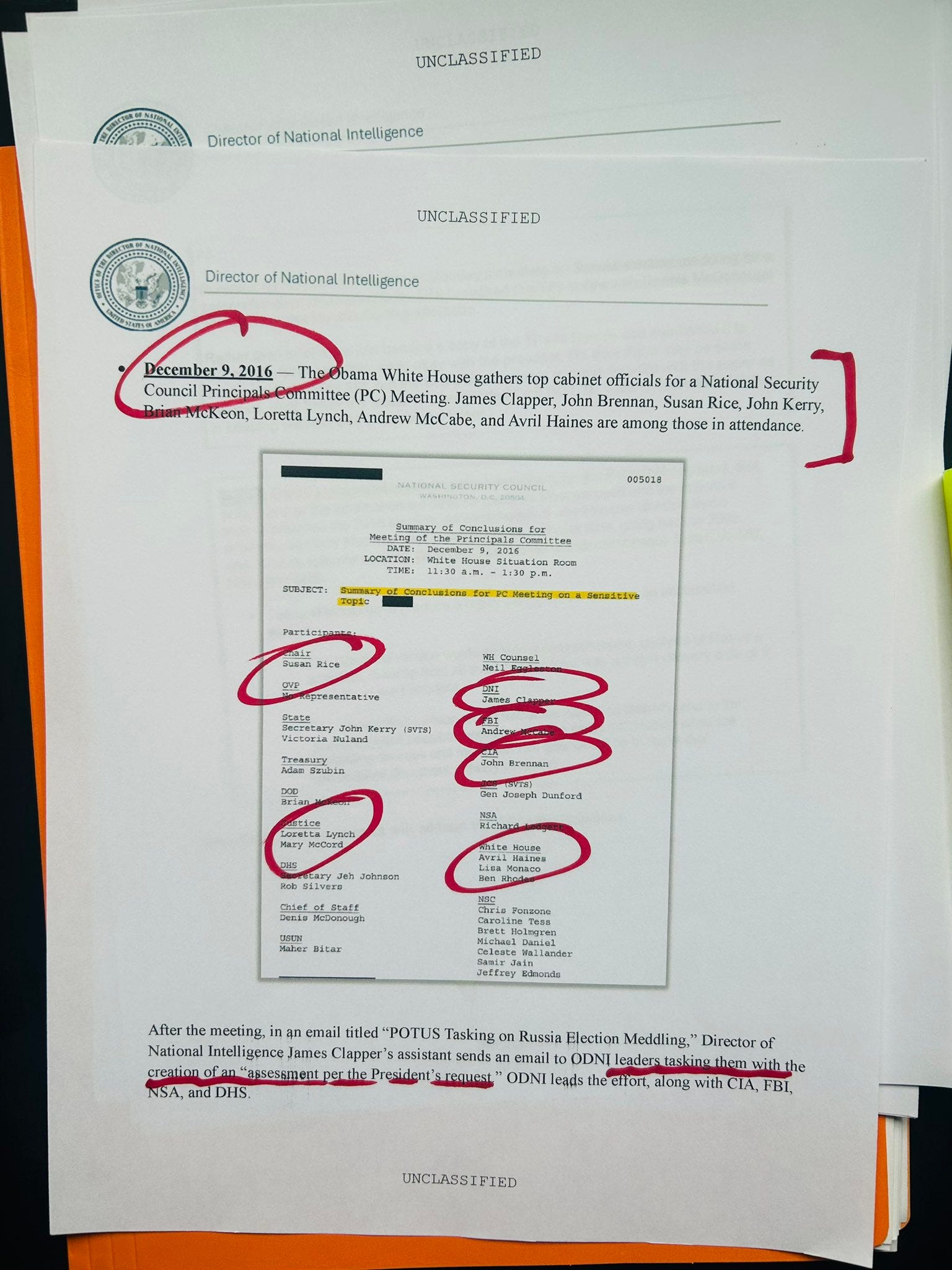 Obama White House Gathers Top Cabinet Officials including Clapper, Brennan, Susan Rice, Andrew McCabe and others.