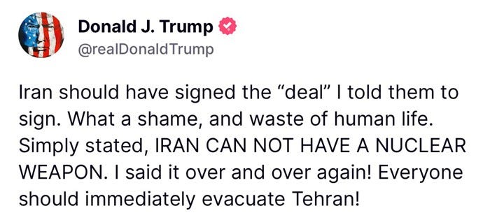Our Israeli allies need to prepare for another round of massive amounts of missiles. Iran—you better get ready for a strategic counteroffensive. The Israelis have planned this war for a long time and my sense is that they are far more ready than you, particularly their population. The Iranian people DO NOT want to suffer any longer under their brutal tyrannical regime.
